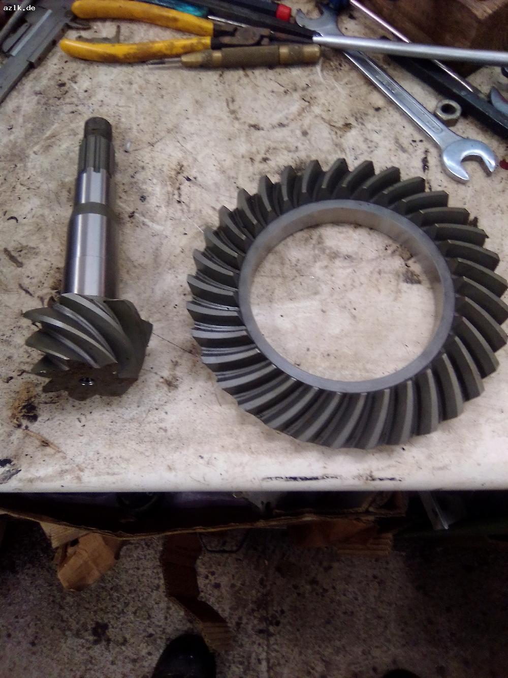 Laut meinen BUCH ist angegeben 33 zu 7 , festgestellt habe ich bei 2 Diff s 41 zu 9 , ein Diff hat 38 zu 9( verzählt habe ich mich eigentlich nicht aber vergessen es zu fotografieren nur im BUCH vermerkt) , das habe ich eingebaut (durch kleinere Übersetzung denke ich wird der Mossi etwas schneller). Eine Überprüfung im eingebauten Zustand erspare ich mir mal .