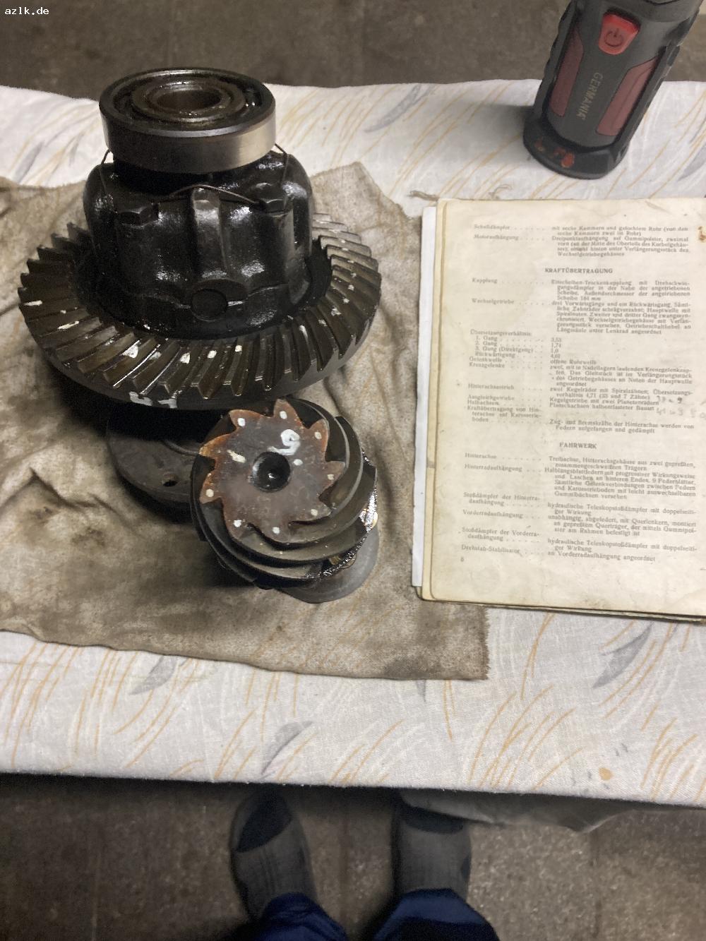Es gibt bei einem Fahrzeug dieses Alters keine Garantie, dass in der Vorderachse auch die originale Zahnradpaar drin ist.