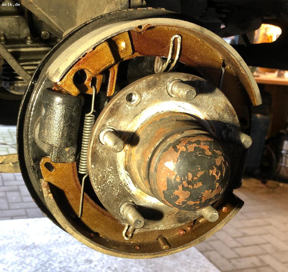 Es ist eine sehr schöne Arbeit geworden, wie man auf dem Bild sieht. Eines ist aber auch hier wichtig: hat man neue Trommeln, darf der neue Belag nicht dicker als 4,5 mm sein, sonst gehen die Trommeln nicht drüber. Die Firma Röhler kann aber die Bremsbacken passend herunterschleifen. Dafür brauchen sie das Innenmaß der verwendeten Trommel (neu sind es exakt 23 mm).