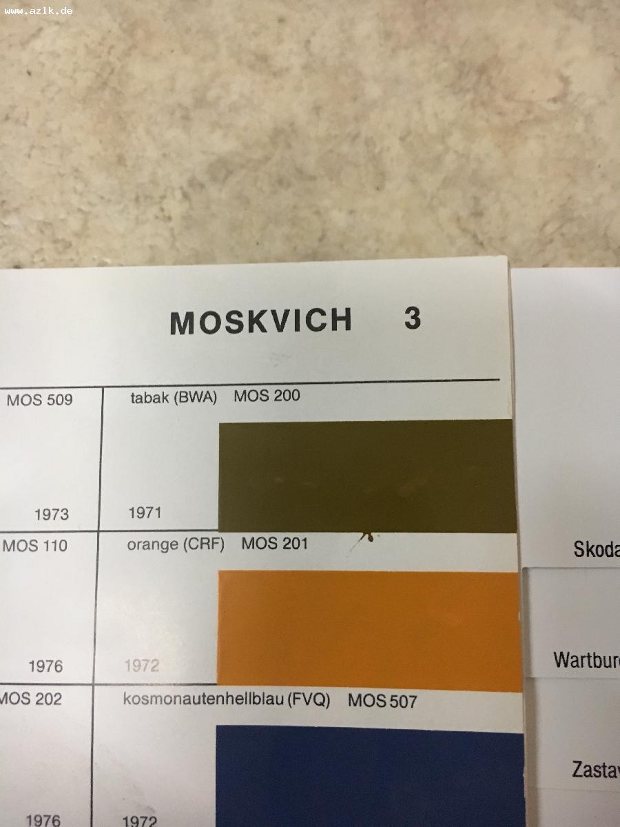 ich habe Farbkarten von Glasurit mit Moskvich Farbnummern.